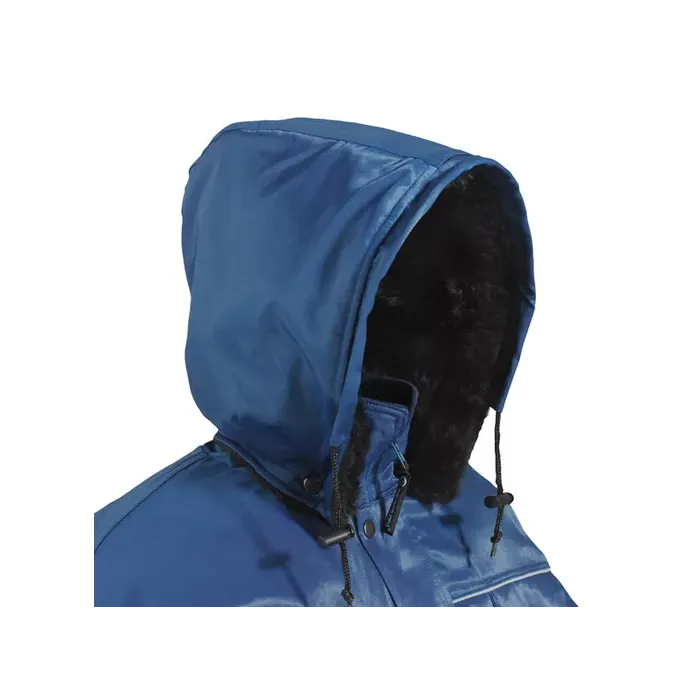 Il parka Beaver MO57630 di Coverguard è un capo tecnico progettato per offrire una protezione superiore contro le temperature rigide nei settori dell'edilizia, della logistica e delle infrastrutture. Realizzato con un tessuto esterno in misto cotone e poliestere impermeabile, questo indumento garantisce un comfort termico eccezionale grazie alla fodera interna del corpo in morbida pelliccia sintetica e alle maniche imbottite in taffetà. La struttura include un collo alto e un cappuccio removibile tramite bottoni a pressione, dotato di corda di regolazione elastica per adattarsi a ogni esigenza operativa. La chiusura centrale è protetta da una patta con bottoni a pressione, mentre i polsini sono rifiniti con un sistema semi-elastico e fasce di regolazione in velcro per isolare efficacemente dal freddo. La funzionalità è assicurata da una dotazione completa di tasche, tra cui capienti tasche basse applicate, tasche pettorali con patta, uno scomparto dedicato per il telefono e una pratica tasca interna. Certificato secondo la normativa per la protezione dal freddo, il parka integra anche profili riflettenti che aumentano la visibilità del lavoratore in condizioni di scarsa illuminazione.
