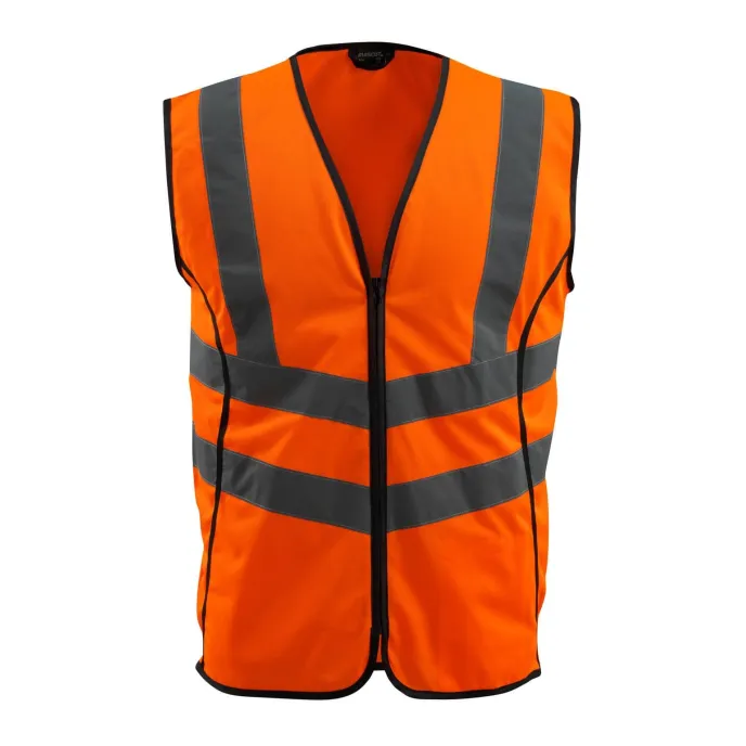Gilet da Lavoro Alta visibilità Wingate firmato Mascot, dotato di cerniera frontale nascosta dietro il tessuto in modo che polvere e impurità non possano danneggiarla, è di taglia ampia, pensato per essere indossato sopra ad altro vestiario, ha extra visibilità grazie ai tessuto fluorescente con strisce riflettenti orizzontali a V e verticali con orlo con fascia e tasca interna. Tessuto certificato OEKO-TEX® STANDARD 100 , certificati EN ISO 20471 - classe 1 Hi-Vis gruppo C