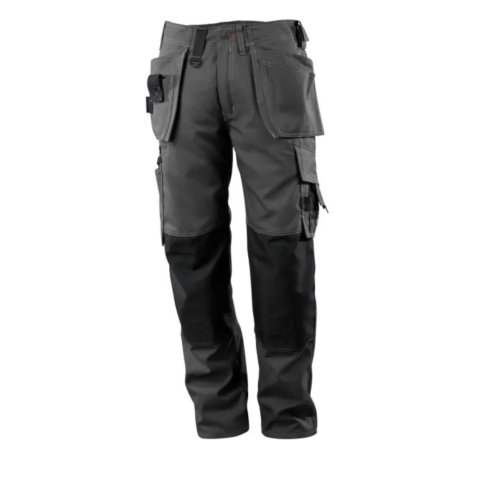 Pantaloni da lavoro Multitasche Lindos firmati Mascot, dotati di passanti della cintura, patta con cerniera, tasche esterne rinforzate, taschine addizionali e passanti per attrezzi, aperture per tasche esterne, per portarle all'interno, anello a D, tasche posteriori, uno con pattina e chiusura a scatto e uno con cerniera a scomparsa, tasche coscia, una con pattina e chiusura a scatto e una con cerniera a scomparsa, tasca laterale porta-cellulare con pattina e chiusura a scatto regolabile, tasche porta-ginocchiere regolabili in CORDURA® resistente a 500 D, cuciture di contrasto rossi su parte del capo e profili riflettenti.