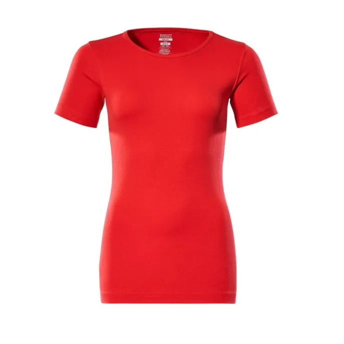T-Shirt da lavoro da donna 100% Cotone Arras firmata Mascot, dotata di Ladies Fit con vestibilit sfiancata da donna, costine sul collo, cuciture sul collo con leggera imbottitura protettiva per aumentare il comfort sulla pelle con scollatura a V.