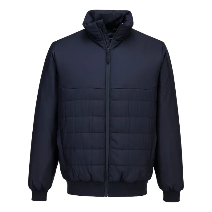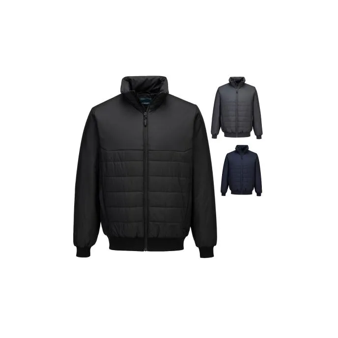 Giacca bomber da uomo trapuntata e imbottita, dal look moderno e professionale, ideale per abbigliamento aziendale e personalizzazione con logo. Garantisce calore e comfort grazie all’imbottitura isolante, mentre la finitura idrorepellente Texpel™ Splash Eco senza PFAS protegge dalla pioggia leggera.Realizzata in tessuto resistente, traspirante e antivento, presenta orlo e polsini a costine, vita elasticizzata e mentoniera con patta interna antipioggia per un comfort superiore. Dotata di pratiche tasche con zip e apertura frontale con cerniera, è una soluzione leggera, funzionale e versatile per l’uso quotidiano.