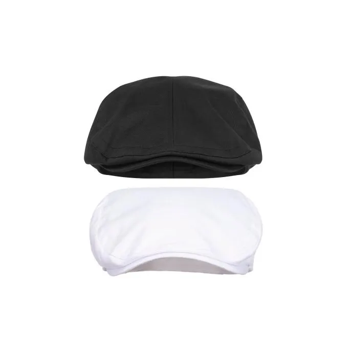 Berretto piatto da chef elegante con forma arrotondata e piccola visiera rigida, Leggero comodo e traspirante grazie ai fori di ventilazione,Tessuto twill resistente che non scolorisce non si restringe e mantiene la forma nel tempoLavabile in lavatrice a 60 °C , Realizzato in Kingsmill Polycotton poliestere e cotone con fodera in poliester