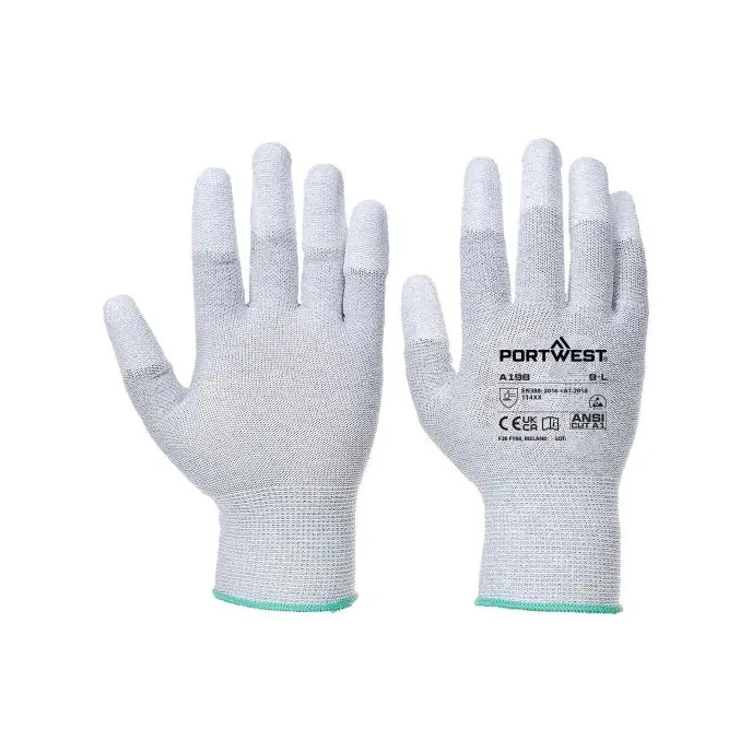 Guanto ESD leggero e performante con fodera calibro 13 in poliestere e fibra di carbonio che disperde l’elettricità statica, ideale per assemblaggio elettronico, test e lavori di precisione. Le dita rivestite in PU liscio garantiscono elevata destrezza, resistenza all’abrasione e massima ventilazione.La struttura senza cuciture e traspirante assicura comfort e vestibilità precisa, mentre le proprietà antistatiche lo rendono adatto ad ambienti sensibili. Versione economica con packaging ridotto, certificato CE e venduto in confezioni da 12 per un ottimo rapporto qualità prezzo.