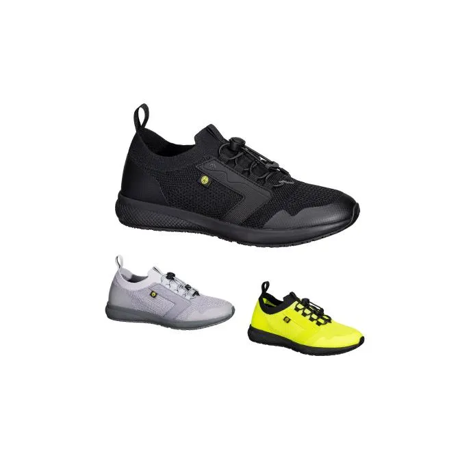Scarpa professionale tipo sneaker leggera e confortevole, realizzata con tomaia in maglia Flyknit progettata per garantire traspirabilità, prestazioni elevate e protezione ESD. Dotata di plantare imbottito che riduce l’affaticamento del piede, sistema di chiusura con cordino regolabile per una calzata sicura e linguette frontale e posteriore per una facile vestibilità. La suola EVA/Gomma a doppia densità assicura stabilità, proprietà antistatiche e resistenza allo scivolamento. Lavabile in lavatrice a 30 °C e certificata CE, è ideale per ambienti professionali dinamici.