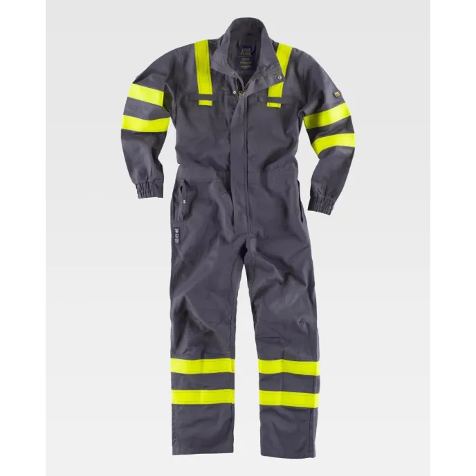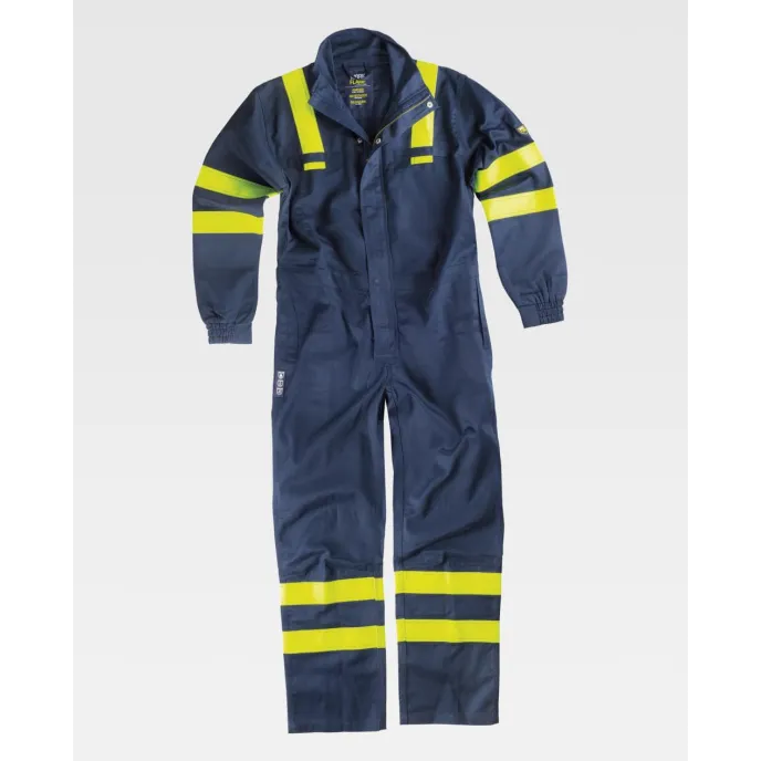 Si tratta di una tuta da lavoro per saldatura, facile da indossare e confortevole, ignifuga e antistatica con triple cuciture per una resistenza superiore, "dotata di collo alto e chiusura con cerniera metallica a doppio cursore e bottoni automatici nascosti sotto patta finta", presenta "due tasche sul petto", "due laterali" e "due posteriori", tutte con occhiello, risvolto di sicurezza e chiusura a bottone automatico, "bande riflettenti gialle ignifughe sulle spalle, maniche e gambe" per garantire visibilità anche in ambienti critici, completata da "polsini elasticizzati", "sprone ed elastico posteriore" per una vestibilità comoda e sicura durante le attività di saldatura più intense.