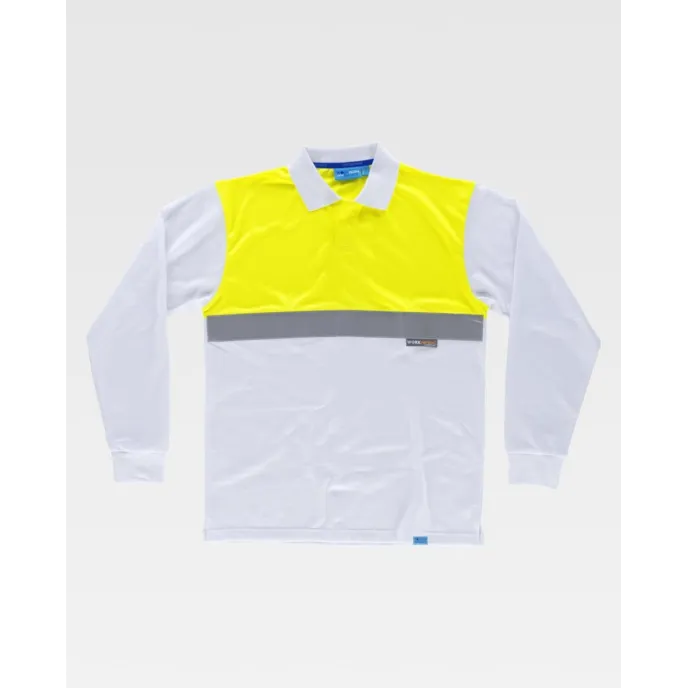 La polo antibatterica manica lunga C3443 ad alta visibilità della Workteam è realizzato in 100% Cotone / 55% Cotone 45% Polistere