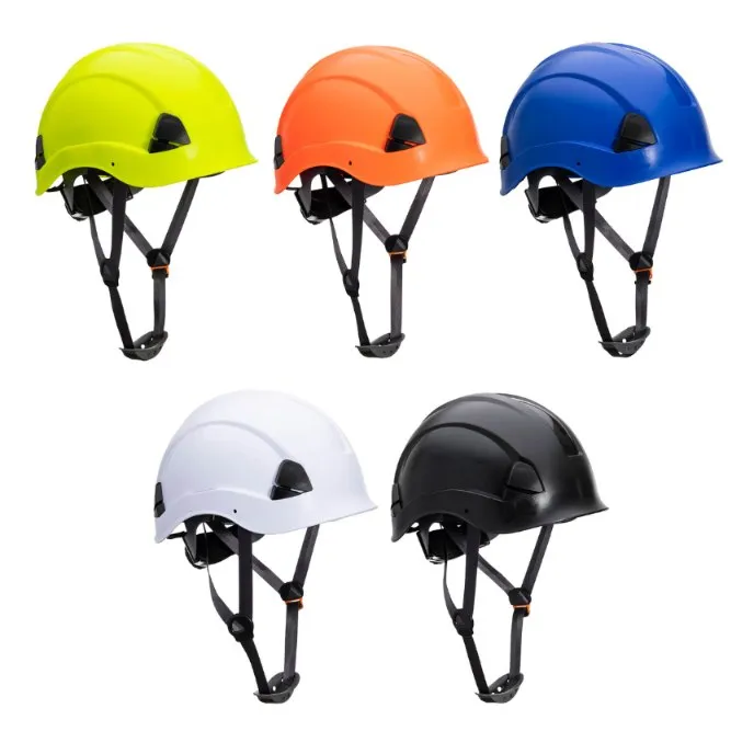 Elmetto da lavoro Endurance firmato Portwest, dotato di calotta dell'elmetto non ventilata per un uso sicuro in presenza di elettricità, imbracatura di sospensione a 6 punti in tessuto per un maggiore comfort e sicurezza di chi la indossa, fascia regolabile tramite sistema con rotella a cricchetto, sottogola incluso, leggero e robusto.