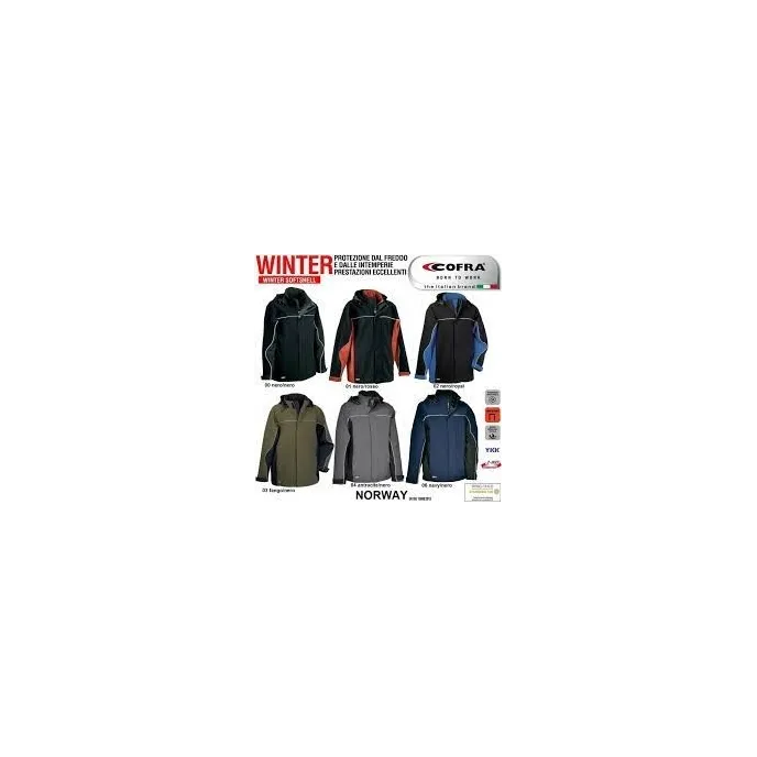 Giacca con Cappuccio da Lavoro Softshell Stretch Elasticizzata Multitasche Cofra Norway V093-0-00