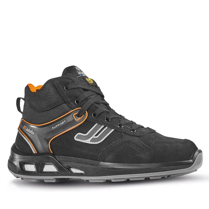Le scarpe antinfortunistiche Jaldynam, firmate Jallatte, appartengono alla linea J-Energy, durature e con tutte le caratteristiche tecniche adatte a molti lavoratori. Sono alte e comode, con tomaia in pelle nabuck altamente resistente alle abrasioni, fodera in mesh 3D con ventilazione periferica, puntale in alluminio 200J, lamina Flextane, soletta Soft Gel, antistatica, ammortizzante e traspirante, suola con poliuretano doppia densità.