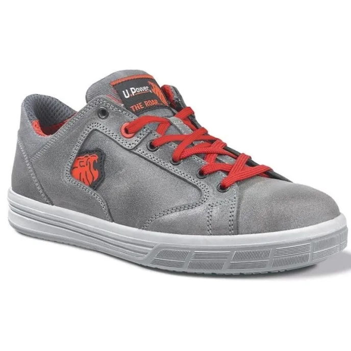 Scarpe antinfortunistiche basse, leggere e comode U-Power della linea The Roar, con tomaia in morbidissima pelle "Old Style" ingrassata e idrorepellente, puntale in alluminio, antiperforazione, antiscivolo e suola PU/PU LIGHT GRIP, S3 SRC