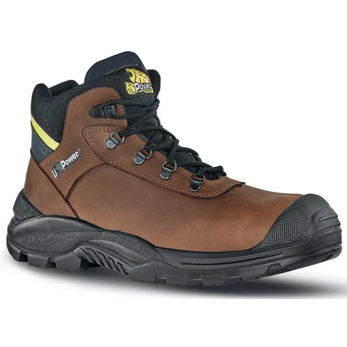 Scarpe antinfortunistiche polacchi, comode e traspiranti u power della linea Step One, con tomaia in morbida pelle pull-up idrorepellente, copripuntale di rinforzo in poliuretano, puntale Composite, antiperforazione, antiscivolo, lamina in acciaio ergonomica e suola PU/PU, RS S3 SRC