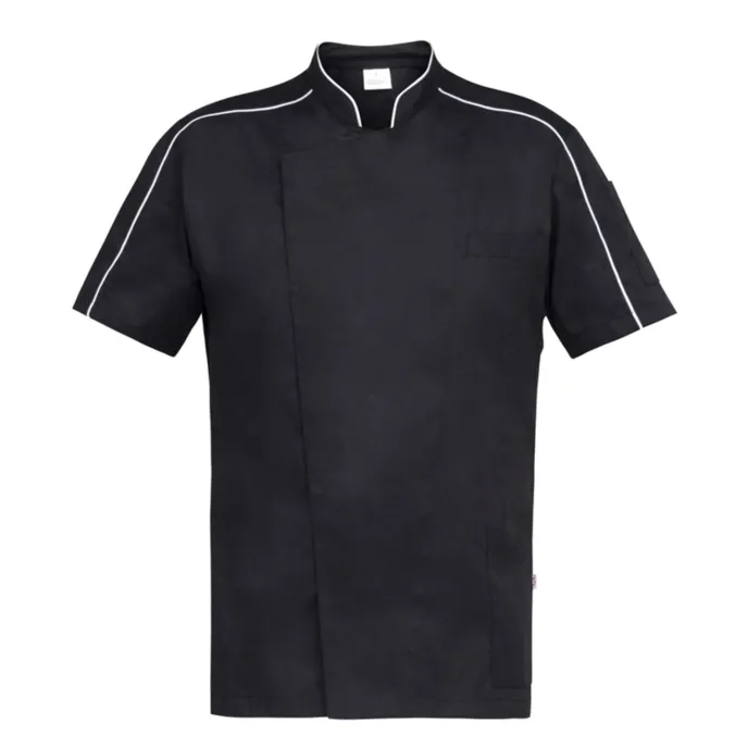 La casacca da lavoro Valerio, firmata Giblor's, è l'ideale per chi lavora in ambienti di ricevimento, comodissima e composta in tessuto poliestere e cotone, che garantisce una perfetta vestibilità, in questo caso Slim Fit. E' un capo leggero ed estivo, con maniche corte, una tasca laterale a destra, un taschino sul petto, l'abbottonaura centrale con bottoni nascosti e due spaccheti dietro.