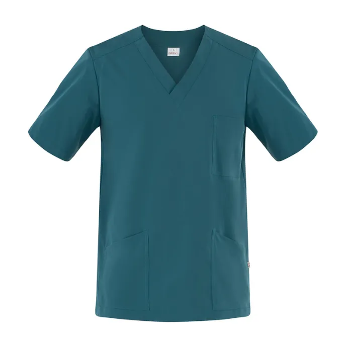 Casacca da lavoro firmata Giblor's,maniche corte ,dotata di 2 tasche ,una sul petto , scollo a V ,2 spacchi laterali , è realizzata nel nuovo tessuto G-TECH PRO con finissaggio al grafene, un tessuto  antibatterico, traspirante ,asciuga velocemente ,lavabile ad alte temperature ,resiste al candeggio .
