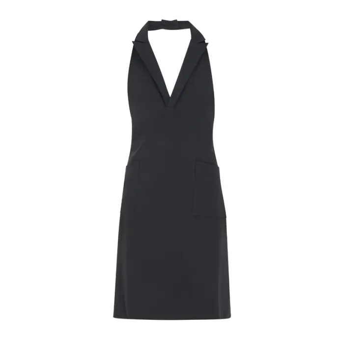 Il grembiule Siviglia di Giblor's è un capo elegante ed essenziale, pensato appositamente per i professionisti del settore food, in particolare per quelli che lavorano in sala. Questo grembiule è realizzato con una gabardina di poliestere elasticizzato che rende il tessuto resistente e al contempo confortevole. Composto in 95% poliestere, 5 % elastan, peso 220 gr. Uno degli aspetti distintivi di questo grembiule è la scollatura medio-profonda incorniciata da un colletto e rever elegante, che gli conferiscono un look più raffinato. Il design classico del rever a lancia si abbina perfettamente alle tasche laterali, che completano il capo, rendendolo estremamente versatile e funzionale. Il grembiule Siviglia è il capo ideale per chi cerca funzionalità, comodità ed eleganza