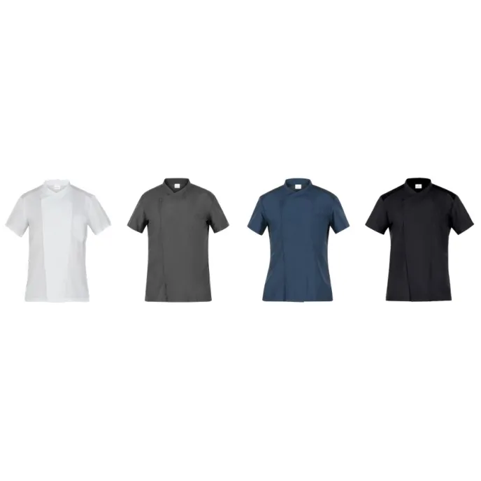 La giacca Liam di Giblor's è l'indumento ideale per chef e operatori del settore food. Realizzata in un morbido e freschissimo 100% poliestere microfibra ultraleggero questa giacca pesa solamente 86 g / m² e regala una sensazione di leggerezza piacevole da indossare. Il tessuto utilizzato è trattato con l'innovativo ed esclusivo sistema Dry&Clean, che conferisce alla giacca proprietà di repellenza all'acqua e alle macchie garantendo colori brillanti nel tempo. Il tessuto risulta morbido, brillante e presenta un'eccellente durata nel tempo, inoltre l'asciugatura estremamente rapida del capo, lo rende pratico e facile da gestire. La giacca presenta una manica corta ed è disponibile in 4 varianti colore: bianco, nero, grigio e blu. Il colletto coreano con chiusura a punta, l'abbottonatura nascosta doppio petto, il taschino laterale sul cuore e il retro della giacca, costituito interamente da un pannello in maglia di piquet in tono, completano lo stile di questo capo unico. La spalla pronunciata sul davanti e l'importante impuntura a 2 aghi donano un animo sportivo alla giacca Liam. In conclusione, la giacca Liam è il connubio perfetto tra funzionalità e stile. Se stai cercando un capo confortevole, resistente e di tendenza, non puoi non optare per questo capo di alta qualità