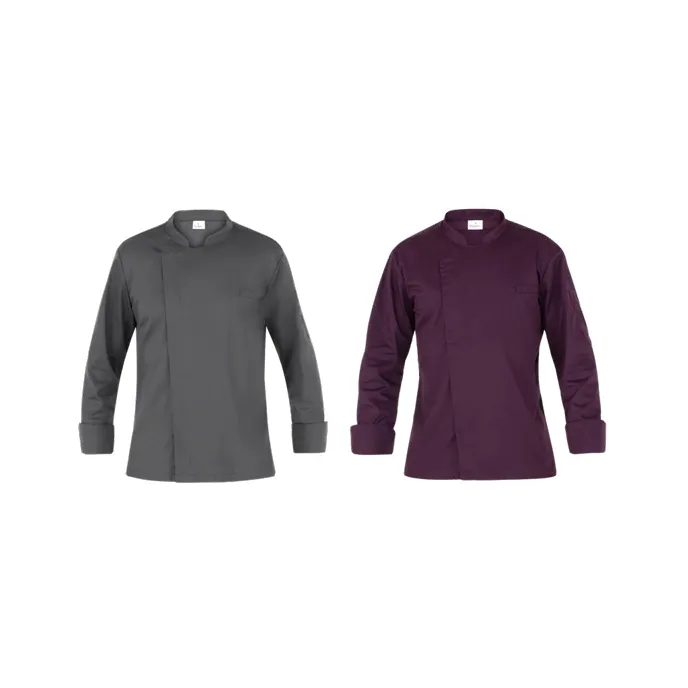 La giacca Francesco di Giblor’s è una nuova proposta della linea "G” Evergreen dalla vestibilità Slim Fit. Ha un aspetto classico, giovane, pratico e confortevole. È realizzata in un misto poliestere cotone dalla grammatura di 115 g / m² che si presta a lavaggi ad alte temperature. Il collo è classico coreano e l’abbottonatura nascosta con automatici e con un aspetto senza punta. Si presenta con il taschino sul petto lato cuore e un porta penne applicato sulla manica sx indossata. È una manica lunga, ed il sottomanica e i fianchetti dietro sono in maglia di piquet nero. Il capo risulta molto traspirante, leggero morbido, con un'ottima areazione. È disponibile in 2 colorazioni: prugna e un brillante grigio medio, entrambi colori reattivi.