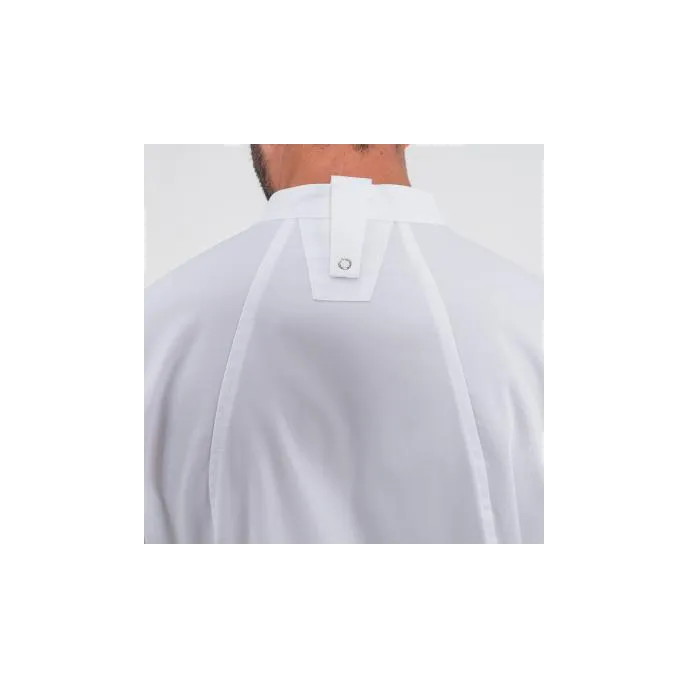 Caratteristiche: Leggera e traspirante, loycell e poliestere elasticizzati, collo coreano, maniche lunghe, abbottonatura nascosta, taschino sul petto, taschino porta-penne sulla manica, e due spacchetti dietro.