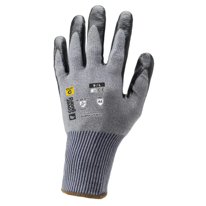 12 Paia - Guanti Da Lavoro Coverguard In Nitrile Eurocut 1CUNS00 Rischi Meccanici