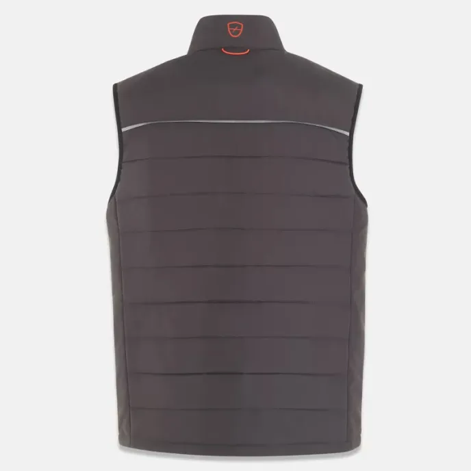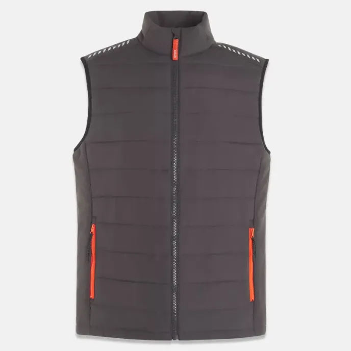 Giacca imbottita senza maniche leggera e performante, adatta tutto l’anno come capo di mezza stagione o strato intermedio.Realizzata in tessuto idrorepellente con rinforzi Ripstop®, offre resistenza agli agenti atmosferici e agli strappi. L’imbottitura termoregolante Sorona® garantisce isolamento, traspirabilità e asciugatura rapida.Dotata di 2 tasche esterne con zip e 2 interne capienti, colletto alto confortevole e dettagli riflettenti per maggiore visibilità. Finiture elastiche e inserti a contrasto arancione completano il design moderno e funzionale.