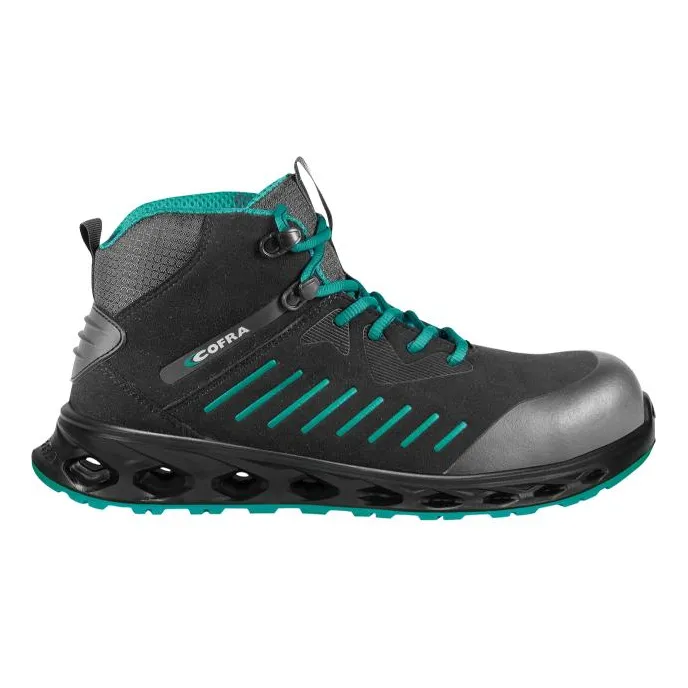 Le scarpe alte antinfortunistiche Jumping, firmate Cofra, della linea aggresive, possiedono tomaia in microfibra effetto scamosciato idrorepellente, fodera interna SANY-DRY® 100% poliestere, tridimensionale, traspirante, assorbente e deassorbente, antiabrasione. Soletta LIGHT FOAM ESD, realizzata in schiuma di poliuretano profumato estremamente morbido e confortevole, con bassa resistenza elettrica, rende la scarpa leggera e flessibile. Forata, antistatica, dalla forma anatomica che abbraccia e sostiene l’arco plantare, rivestita in tessuto antiabrasione, assorbe il sudore lasciando il piede sempre asciutto; assicura massimo comfort e assorbimento dell’energia d’impatto. Puntale in FIBERGLASS CAP, non metallico in fibra di vetro resistente a 200 J con proprietà meccaniche, resistenza a carichi statici ed impulsivi. Puntale amagnetico,spessore ridotto in punta, isolante termicamente, più leggero rispetto a quello in acciaio. Lamina Footwear Protection Textile in polietilene e grafene integrato,resistente alla perforazione, conduttiva, leggera e flessibile. Suola in PU,poliuretano bidensità con bassa resistenza elettrica, garantisce un appoggio ben ammortizzato. Calzata 11 mondopoint. Scarpa resistente allo scivolamneto e suola resistente agli idrocarburi. Calzatura adatta all'industria microelettrica.Scarpa consigliata per ambienti Atex.