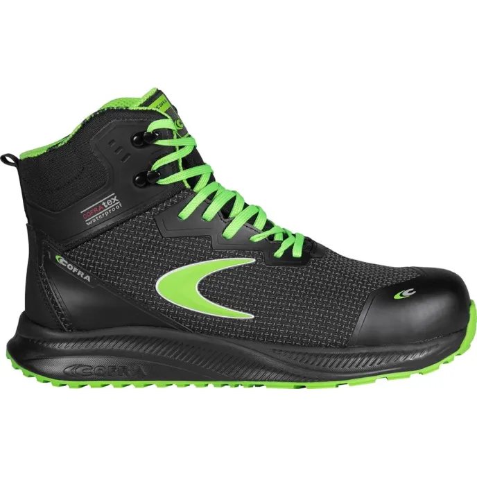 Scarpe antinfortunistiche alte Hale firmate Cofra, dotate di tomaia in TECHSHELL, tessuto innovativo molto tenace, resistente all’abrasione e allo strappo, idrorepellente e traspirante, fodera interna in COFRA-TEX WATERPROOF UNIVERSAL con sistema di costruzione WATERPRO-TECH, puntale Alluminio resistente a 200J, la soletta LIGHT FOAM morbida e confortevole, la suola è in EVA/gomma nitrilica mentre la lamina in polietilene e grafene integrato, conduttiva. Normative: S7S HRO SC FO SR ESD
