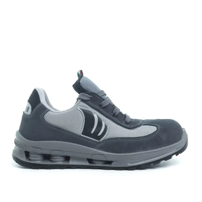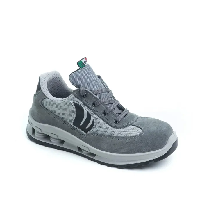 Scarpe antinfortunistiche basse Chromo firmate Lewer, dotate di tomaia in Pelle scamosciata e rete traspirante, fodera FRESH 100% poliammide , traspirante, antiabrasione, soletta in EVA LIGHT, anatomica, forata, antibatterica, con inserto shock absorber, puntale Alluminio 200J, suola Antiperforazione Advance INSOLE non metallica, perforazione zero. Normative: S1PS FO SR