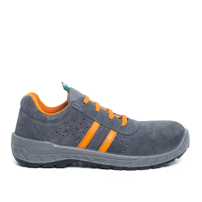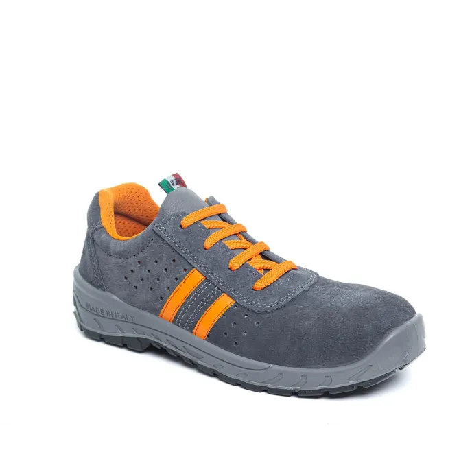 Scarpe antinfortunistiche basse Stabia firmate Lewer, dotate di tomaia in Pelle scamosciata forata, fodera AIR PLUS ad alto grado di evaporazione e resistenza all’abrasione, soletta Antibatterica in soffice PU con sistema di ricambio d’aria, puntale Composito 200J, suola Antiperforazione HTC insole perforazione zero. Normative: S1PL FO SR