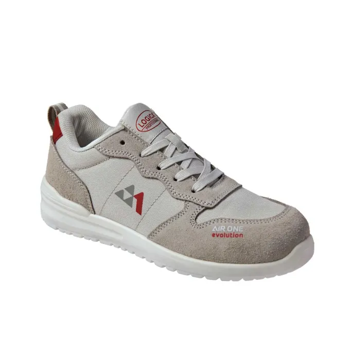 Scarpa Antinfortunistica Basse Scamosciate metalfree AIR ONE/1 firmate Logica, dotate di Tomaia in Pelle Scamosciata, Puntale in Fibra di Vetro, Fodera in tripla rete traspirante, Suola in Poliuretano bi-densità, Soletta Memory Foam estraibile, assorbente, Antinbatterica, Lamina non metallica in tessile antiforo. Normative: S1PL, FO, SR.