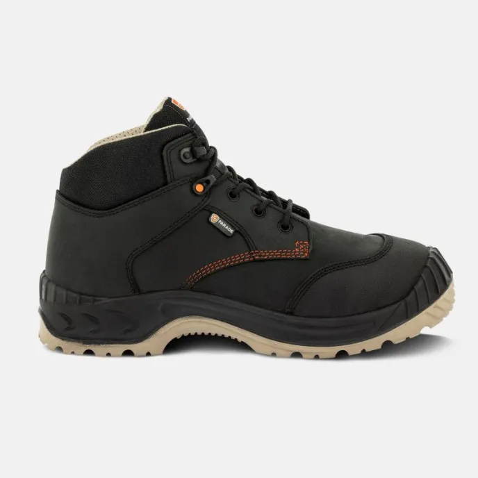 è una scarpa di sicurezza alta pensata per professionisti di edilizia, ingegneria civile e logistica. Robusta, efficace e dal design moderno, è adatta a terreni irregolari, sciolti o scivolosi.Certificata EN ISO 20345: 2022 S3S SR FO LG SC CI HI, è non magnetica e offre tomaia idrorepellente, protezione anteriore SC, puntale in composito, inserto antiforo in tessuto, proprietà antistatiche, assorbimento di energia nel tallone e suola resistente agli idrocarburi con isolamento dal caldo e dal freddo.Garantisce elevato comfort grazie a linguetta e colletto imbottiti, sistema di chiusura rinforzato con ganci e anelli ultra resistenti, soletta durevole, fodera 3D traspirante e tecnologie PARADE FLEX e VPS per maggiore flessibilità e supporto dell’arco plantare.