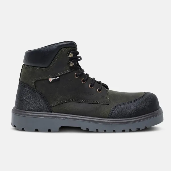 Scarpe Antinfortunistiche Alte firmate Parade, dotate di Tomaia in Pelle Oliata, Puntale in Policarbonato , e inserto antiperforazione non metallico, suola in Poliuretano a doppia densità, soletta in Rete su schiuma PU. Normative: S3 SRC