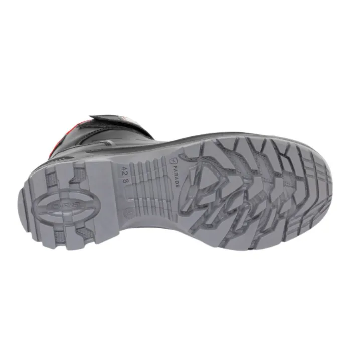 Scarpe Antinfortunistiche Alte Metalfree Toroso firmate Parade, dotate di Tomaia in Pelle Pieno fiore e microfibra , Puntale in Policarbonato, e inserto antiperforazione non metallico, suola in Poliuretano a doppia densità, fodera 3D Mesh , soletta in Rete su schiuma PU a celle aperte in memory foam, rimovibile. Normative: S3 SRC HRO ESD