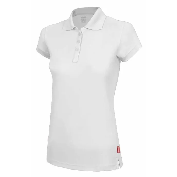 Questa polo femminile da lavoro, destinata all'uso nel settore alberghiero, è composta in 100% poliestere. Dispone di chiusura centrale con bottoni, collo e orlo delle maniche a coste, spacchi laterali, striscia di tessuto base che copre la cucitura del collo.